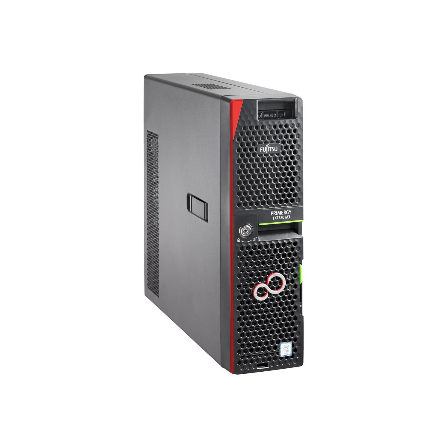 The FUJITSU Server PRIMERGY TX1320 M3 is an ultra-compact, silent, full featured mono-socket server, ideal for both classic Small and Medium Enterprise workloads, plus space constrained environments. Enhanced performance compute for various workloads is assured with the latest Intel Xeon E3-1200 v6 product family, Core i3, Pentium and Celeron processors plus up to 64 GB DDR4 main memory. The server is also well suited for institutions with legal requirements for secure data storage and transmission as it can deploy up to eight 2.5-inch storage drives, advanced RAID controllers and data backup devices, TPM 2.0 capability plus networking options. Future growth is also designed for with four Gen3 PCIe slots. Features such as high efficiency (94%) redundant power supplies enhance reliability at the right economics, while comprehensive server software management options allow for efficient and simplified administration across the entire server lifecycle.