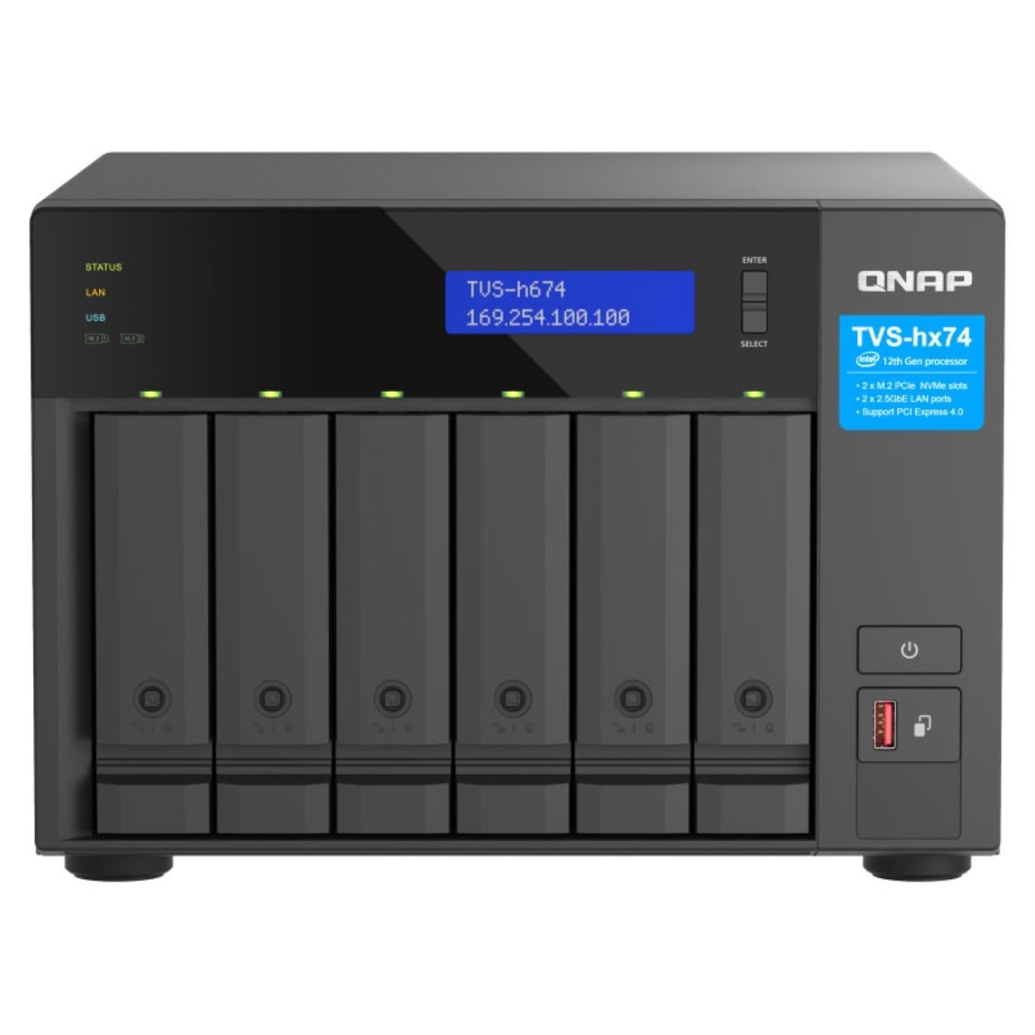 The TVS-H674 has two M.2 PCIe slots, enabling SSD caching or SSD storage pools for improved performance, or other applications. - Build a high-speed 2.5GbE network environment