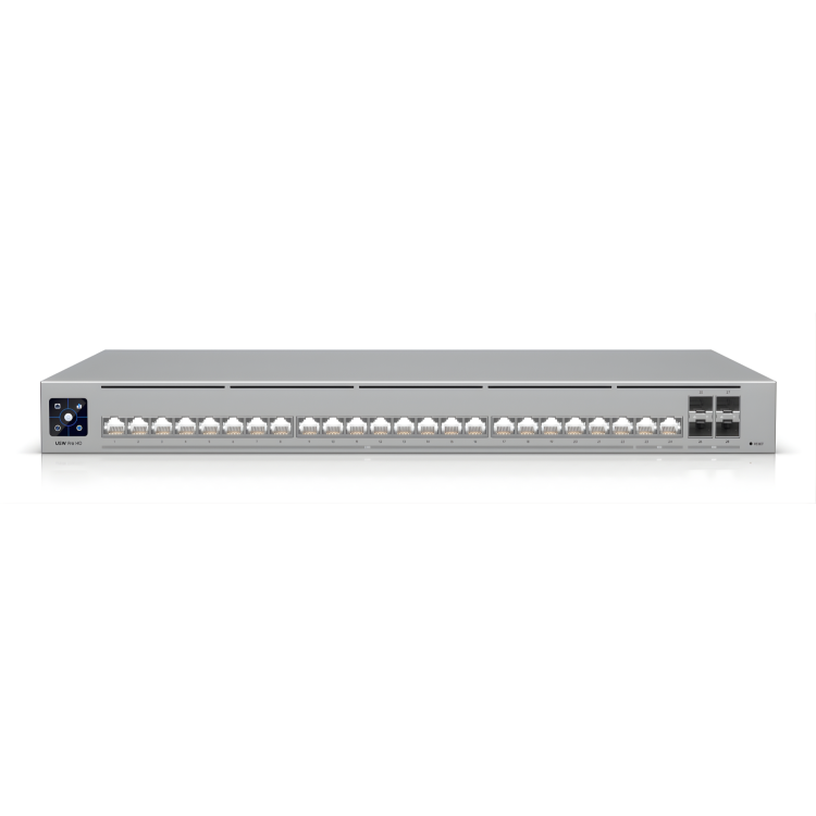 The Ubiquiti USW-Pro-HD-24 UniFi 24-Port L3 Managed 2.5GbE Access Switch is a professional-grade, Layer 3 Etherlighting switch with two (2) 10 GbE ports, twenty-two (22) 2.5 GbE ports, and four (4) 10G SFP+ ports.