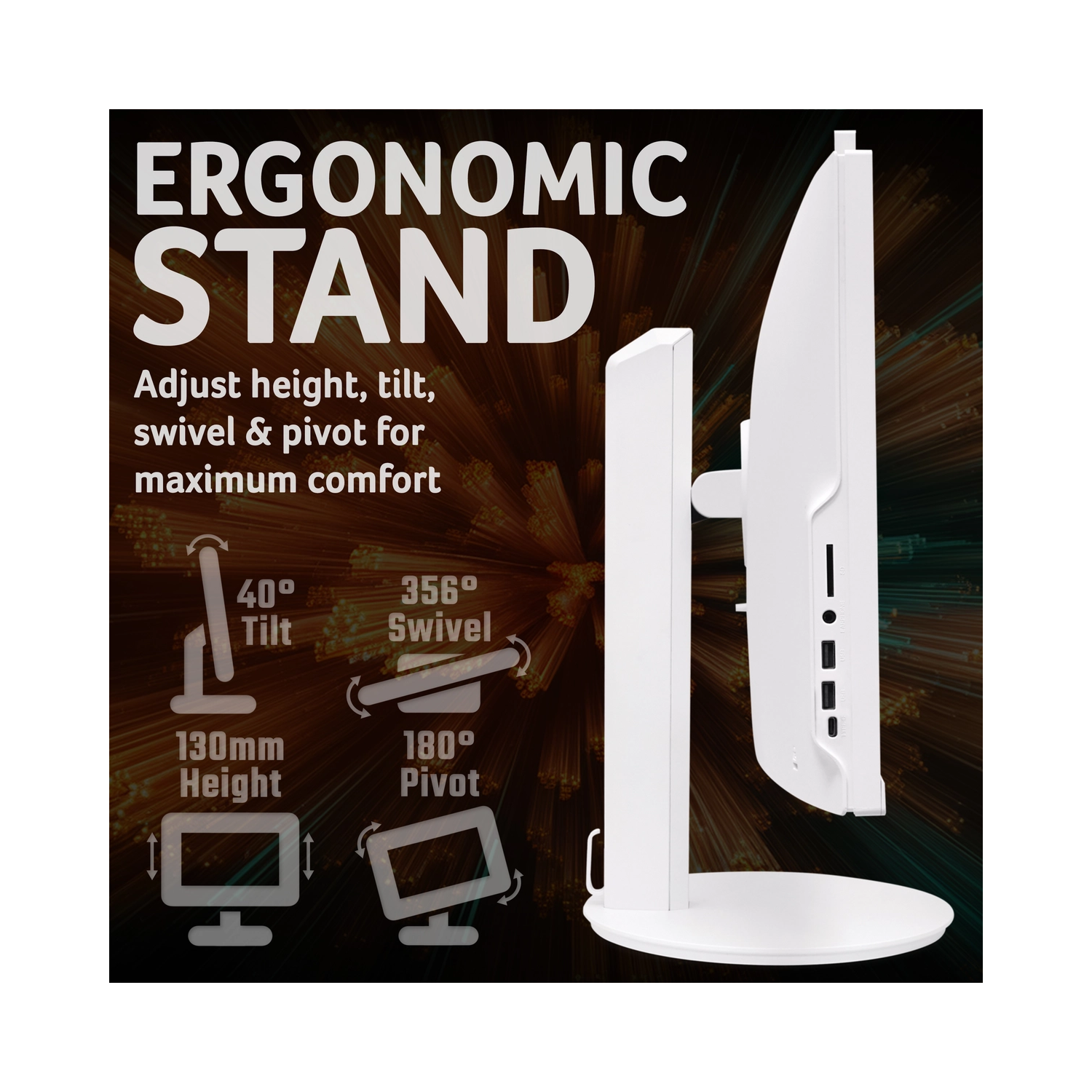 The 27-inch full HD display offers vivid colors and crisp details, making every image, video, and document look stunning. Its sleek design also minimizes clutter on your desk while providing an expansive viewing area that enhances productivity and entertainment alike.