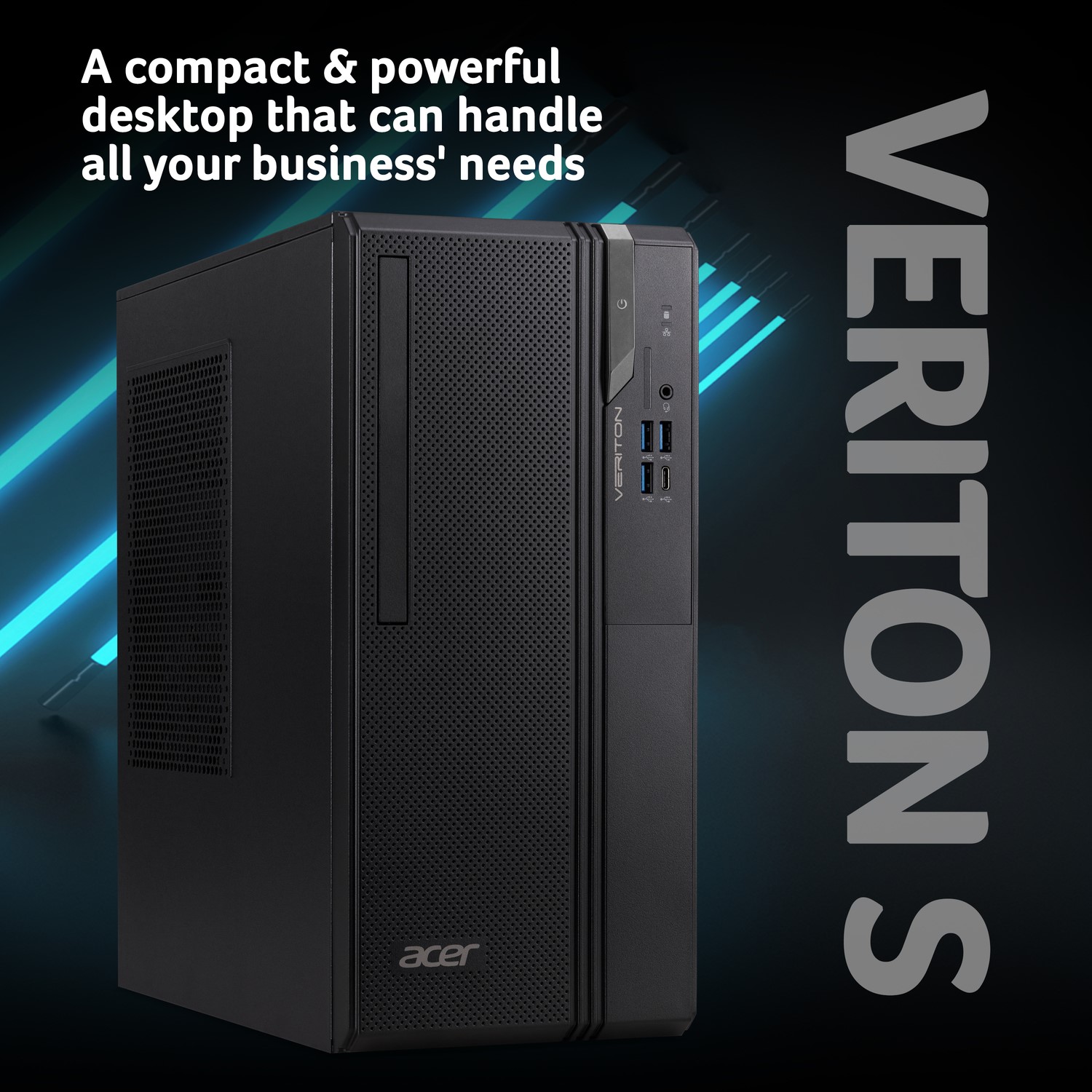 Designed for modern workspaces, the Acer Veriton S boasts a sleek, space-saving chassis. Its compact footprint fits easily on or under a desk while maintaining a professional appearance that complements any office setting.